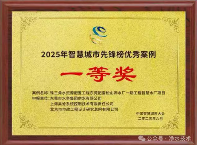 近日,在武汉举行的第十八届中国智慧城市大会上,东莞市水务集团供水有限公司申报的“珠三角水资源配置工程东莞配套松山湖水厂一期工程智慧水厂项目”,凭借其在数字孪生、智慧管控、智能运行方面的卓越实践,从全国300余个案例中脱颖而出,荣获《2025智慧城市先锋榜》优秀案例一等奖。