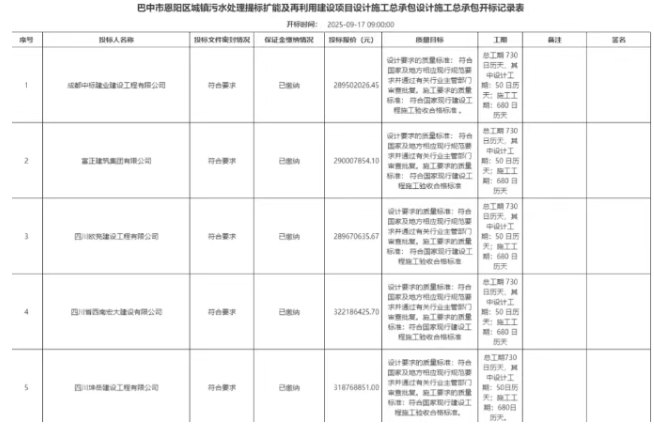 3.37亿!巴中市污水提质扩能项目设计施工总承包候选人公示